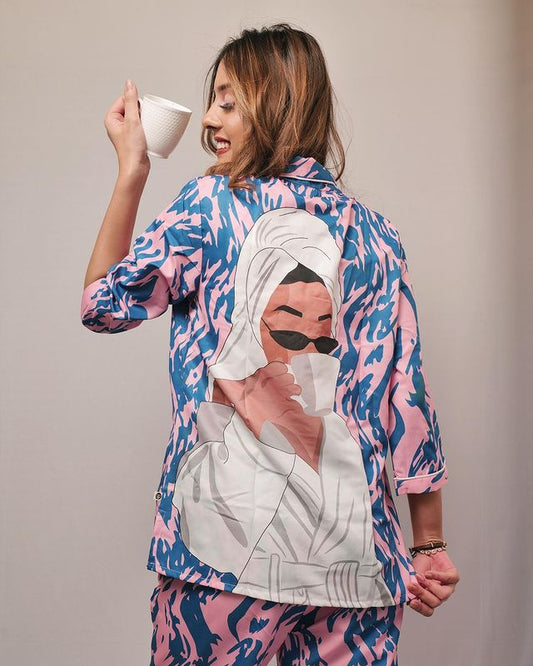 Drama Queen Back Printed Blue Pyjama Set| Womens pjs