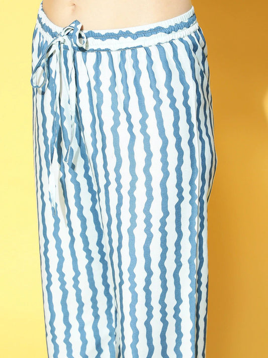 Women Lapel Collar Long Sleeves Striped Casual Night suit