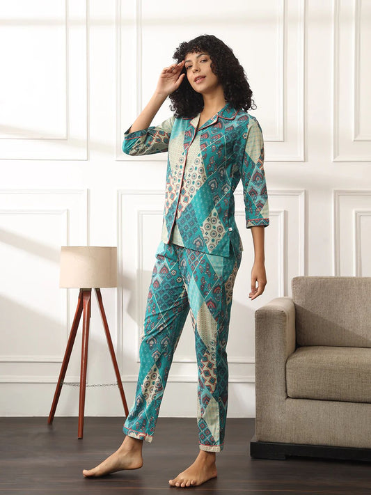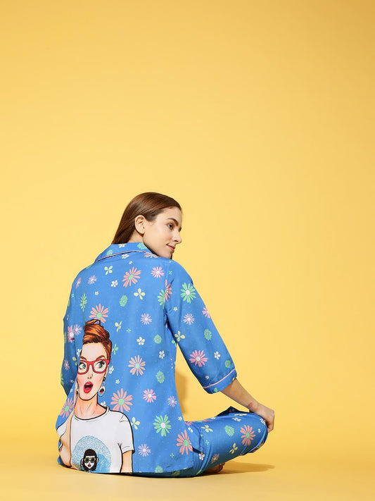 Woman Ocean Blue Dil Ruba Back printed Night Suit