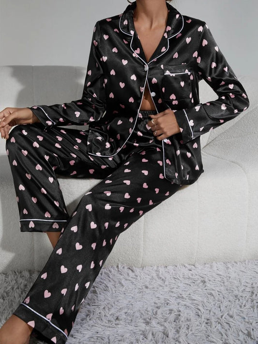 Satin Silk Pajama Set for Women with Long Sleeves & Pockets - Button Down Sleepwear Set