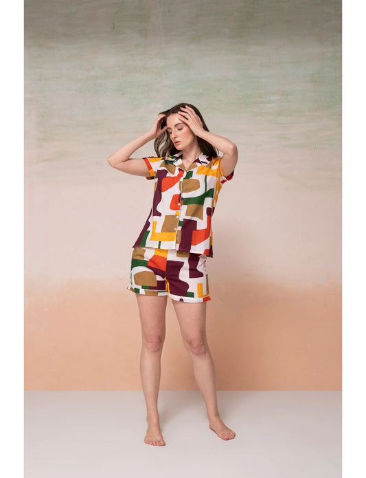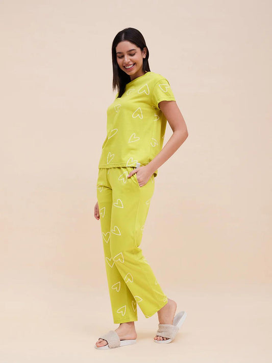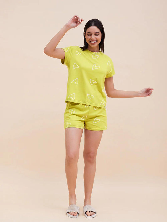 Sweet Dreams Women Yellow Heart Printed Night Short-set
