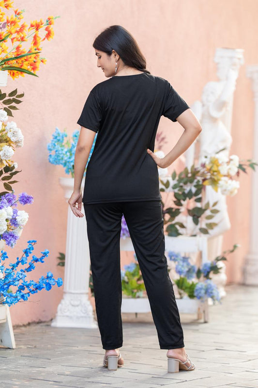 Women's Solid Color Night Suit Set Night Dress,Lounge Wear,Full Pair Set for Women Night Dress