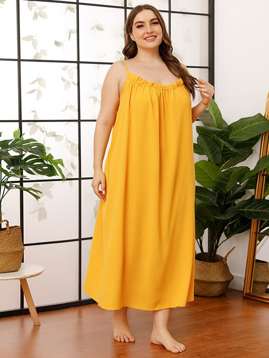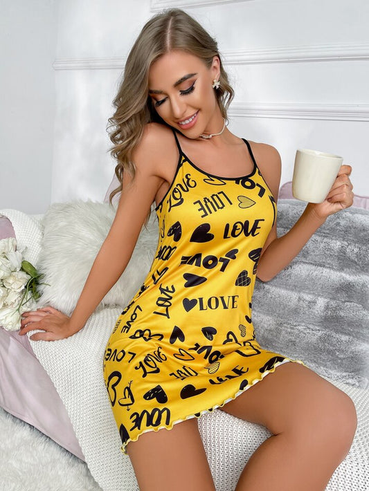 Yellow Cute Heart Print Spaghetti Strap Slip Short Nighty for Women