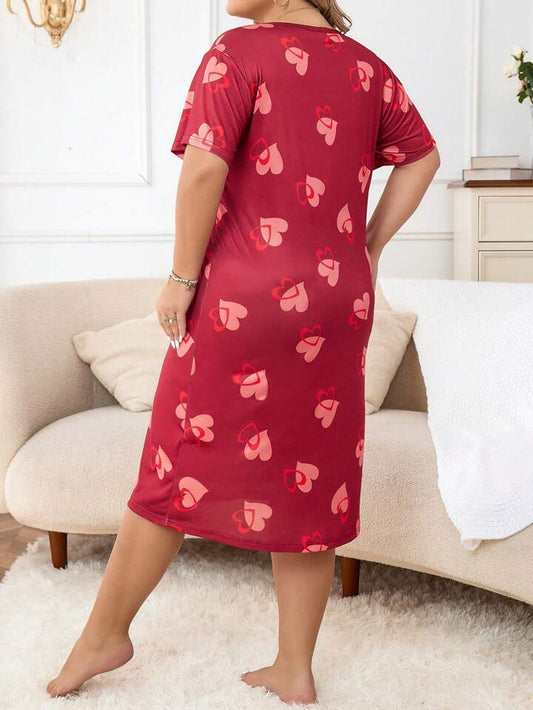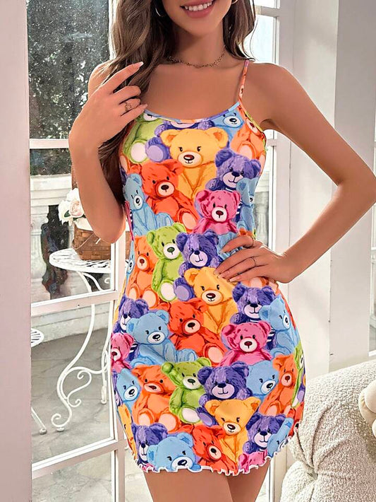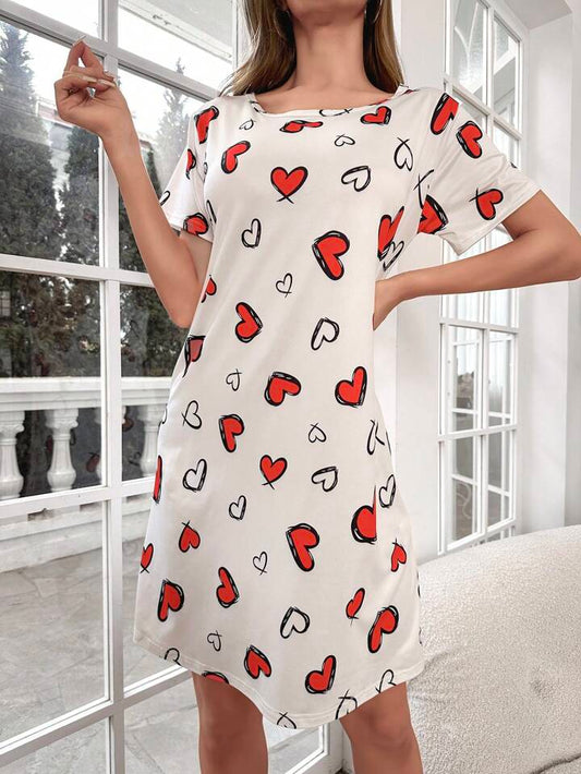 Cute Heart Print Spaghetti Strap Slip Short Nighty for Women