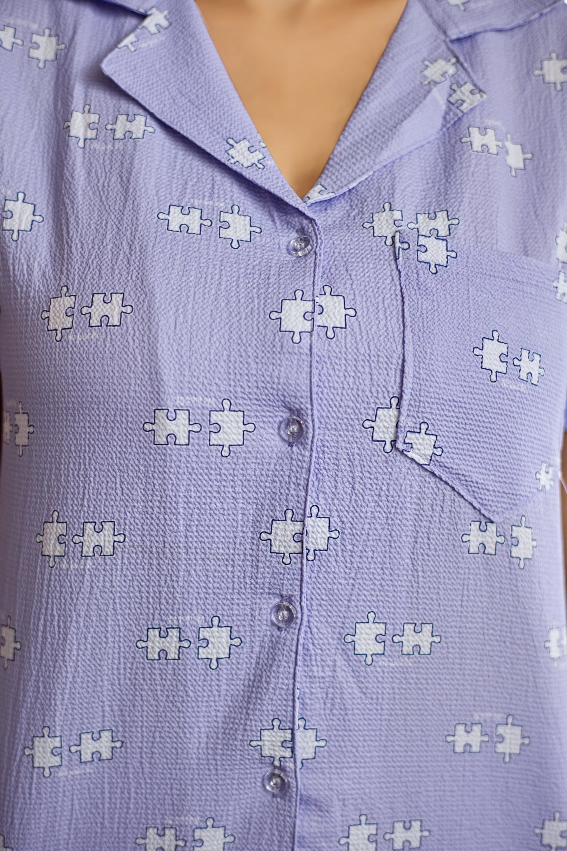 Lavender Bubble Crepe Women's Nightsuit Set For Sweet Dreams