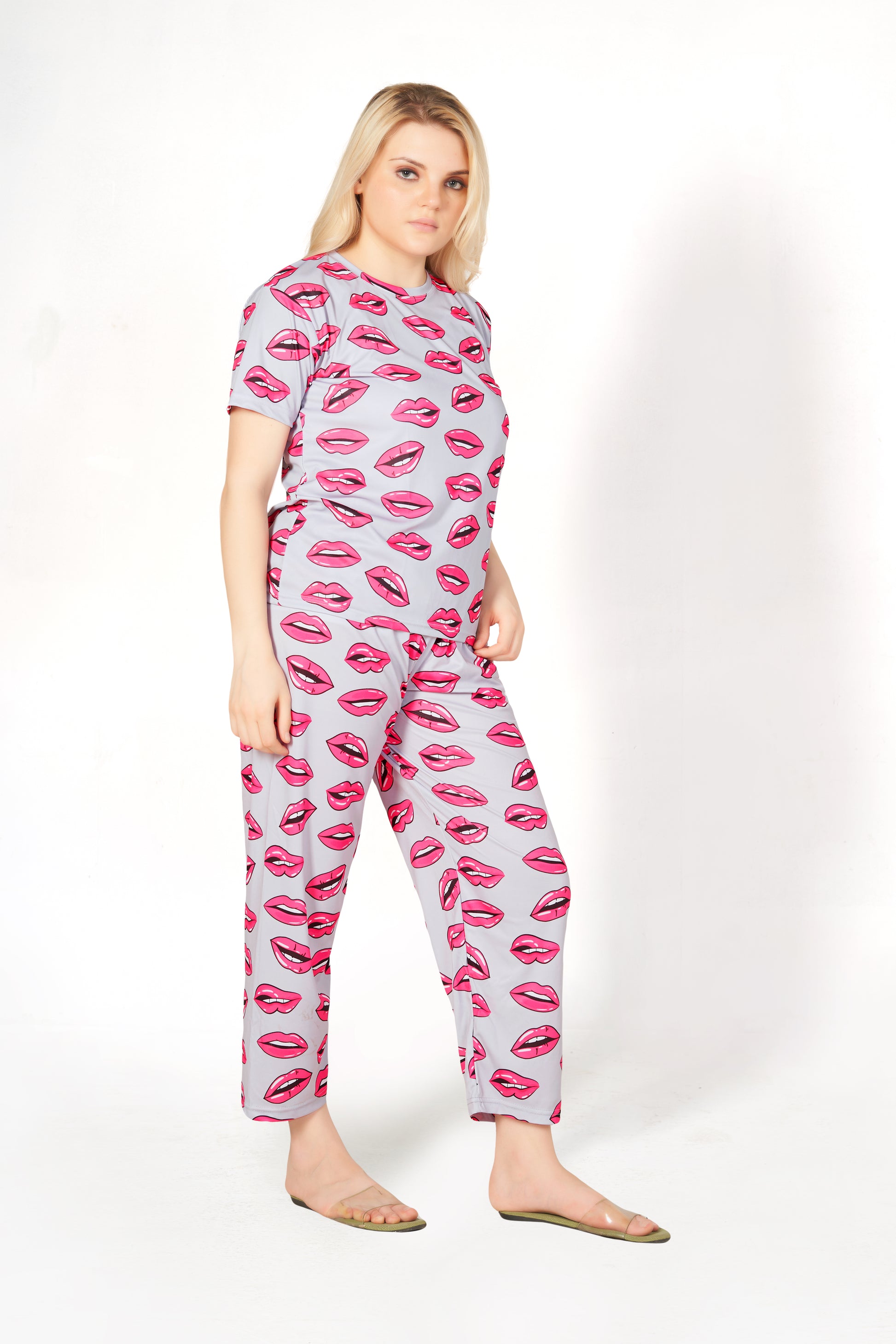 Kiss Kiss Print T-shirt And Long Pajama Set
