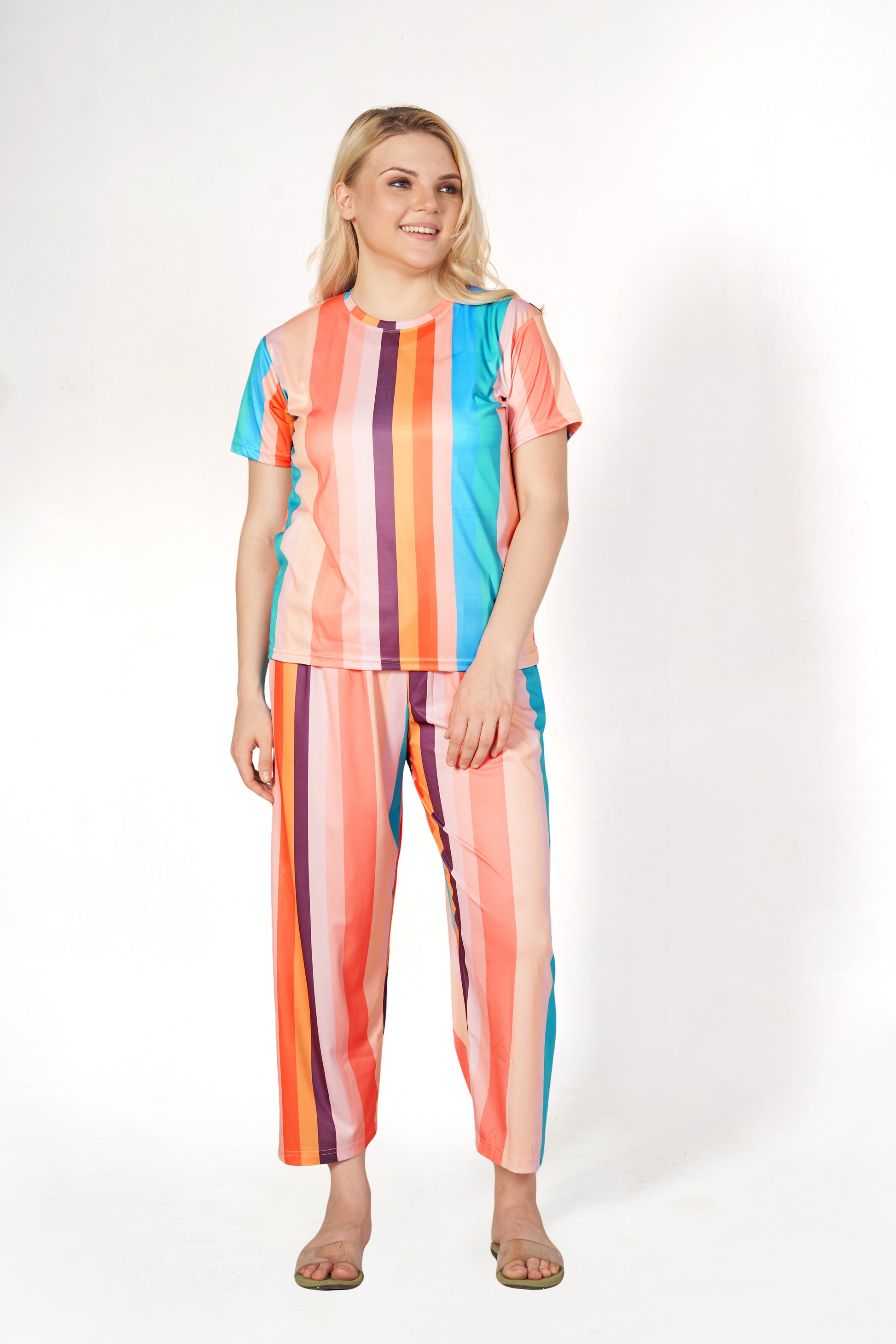 Rainbow Print T-shirt And Long Pajama Set
